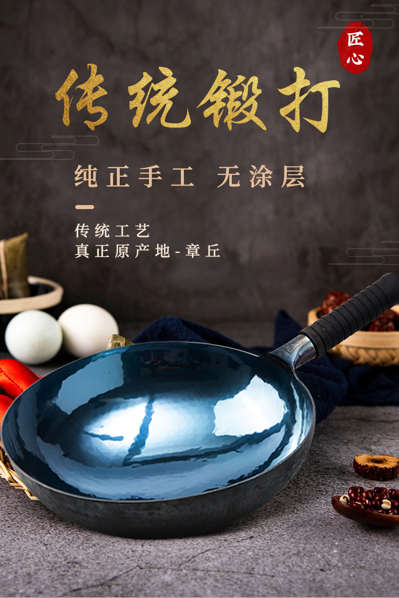 正品炒菜锅手工铁锅官方旗舰传统老式家用无涂层不粘锅产地章丘