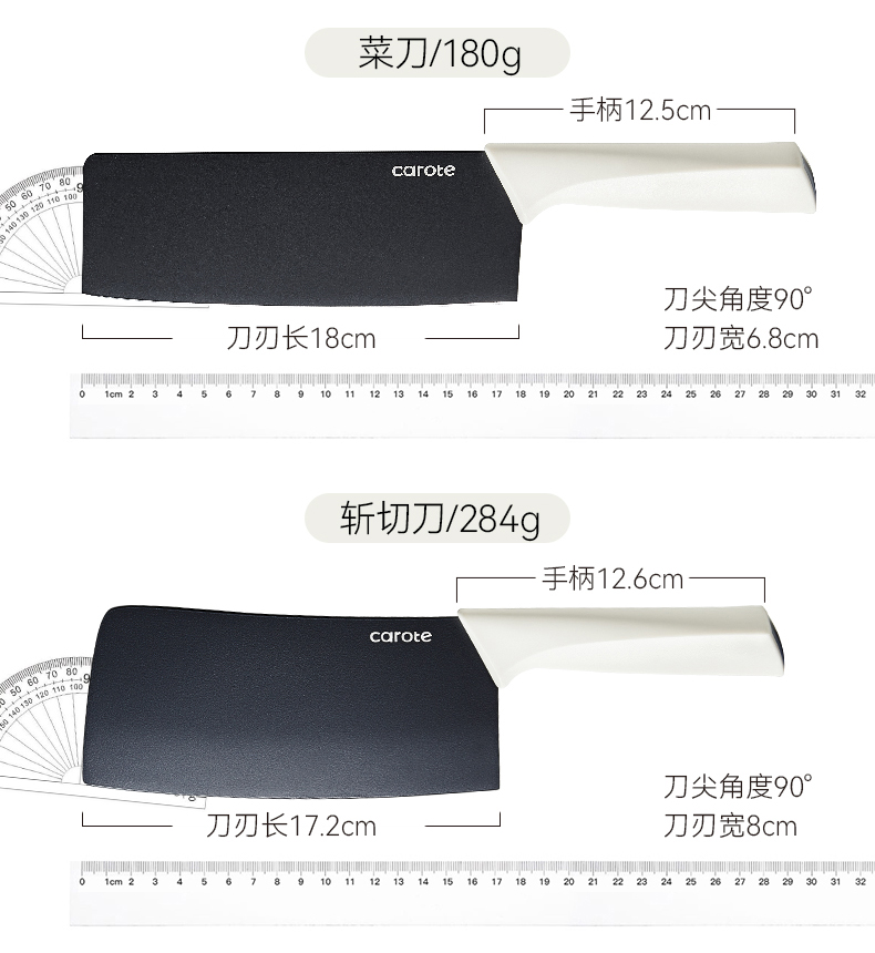 卡罗特抗菌钛刀具套装组合厨房全套菜刀菜板二合一家用菜刀板套装