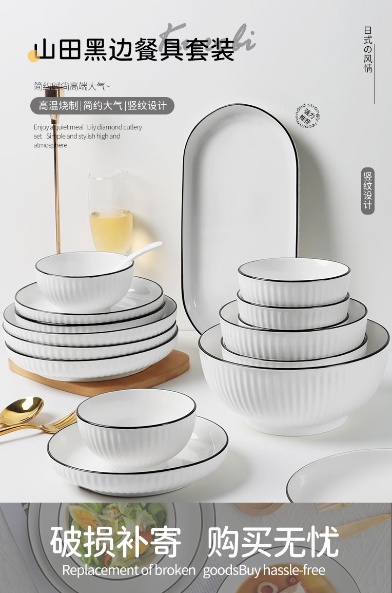 高颜值碗碟套装家用盘子简约碗盘...